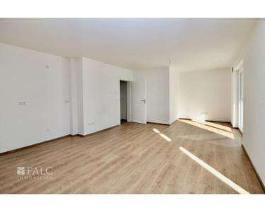 Die Wohnung ist hochwertig ausgestattet: dreifach verglaste Kunststofffenster mit elektrischen Rollläden, Fußbodenheizung und ansprechende Bodenbeläge aus Laminat und Fliesen-Steinzeug.