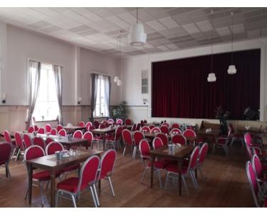 Highlight des großen Festsaals ist die bespielbare Bühne. Mit bis zu 90 Sitzplätzen lassen sich auch große Banketts ausrichten.