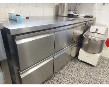 Auf dieser Ebene befindet sich auch die voll ausgestattete Gastroküche mit Spülküche und Kühlhaus. Ausgestattet mit modernen Geräten wie z.B. Konvektomaten, Kippbratpfanne, Kühltisch mit 8 Zügen, Spülmaschine usw. 8 Gasflamen, Tellerwärmschrank, Edelstahlmöbel, BainMarie, Inductions-E Herd usw. usw.