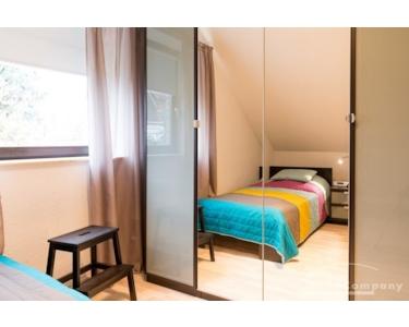 3 Zi.-Wohnung, möbliert, im 1. OG bzw. Dachgeschoss (mit leichten Schrägen) eines Mehrfamilienhauses, mit Balkon.