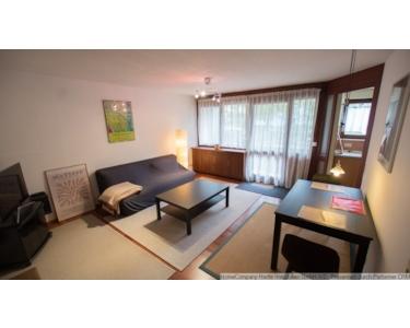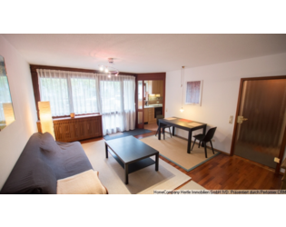 Im EG ohne Lift, Wohn-/Schlafbereich mit Parkettboden, Küche & Bad sind gefließt.