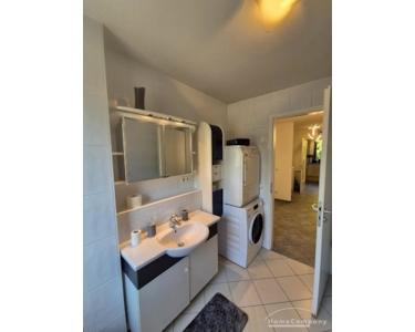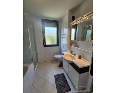 Tagelicht-Bad mit Dusche und Badewanne. Gäste-WC.