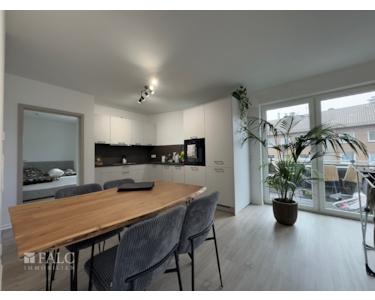 Beim Betreten der Wohnung empfängt Sie ein freundlich gestalteter Eingangsbereich, der nahtlos in den offenen Wohn- und Essbereich übergeht. Großzügige Fensterflächen sorgen für ein lichtdurchflutetes Ambiente und schaffen ein modernes, einladendes Wohngefühl.