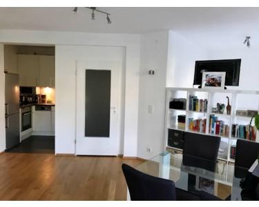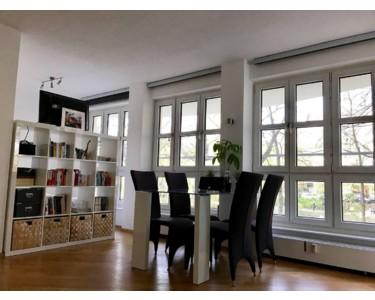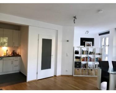 Der offene Wohnbereich mit angrenzender Einbauküche (inkl. Kühl-Gefrier-Kombination, Herd und Miele-Geschirrspülmaschine) ist lichtdurchflutet und bietet Raum zum Wohlfühlen. Der Schlafbereich lässt sich durch einen Raumtrenner dezent abtrennen. Mit kleineren Veränderungen an der Raumaufteilung kann die Wohnung zudem in eine echte Zwei-Zimmer-Wohnung umgestaltet werden.