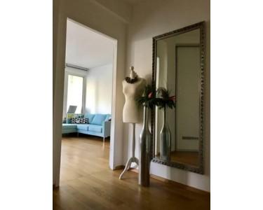 Die helle Wohnung liegt im ersten Obergeschoss und ist bequem per Aufzug erreichbar. Hochwertiges Echtholzparkett und großzügige Fensterflächen schaffen ein freundliches Wohnambiente. In der geräumigen Diele bietet ein großer Einbauschrank mit Schiebetüren praktischen Stauraum.