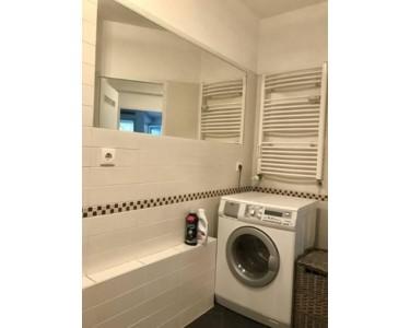 Das innenliegende Badezimmer ist mit einer Badewanne und einem Platz für den im Kaufpreis enthaltenen Waschtrockner ausgestattet.