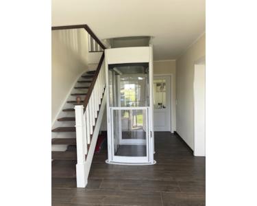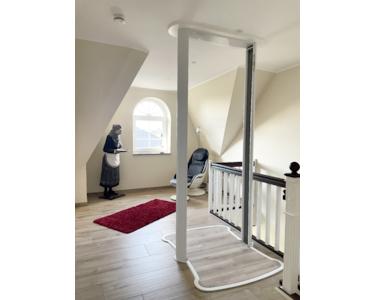 - ein Fahrstuhl, der bequem auf Knopfdruck vom Erdgeschoss ins Obergeschoss führt!
