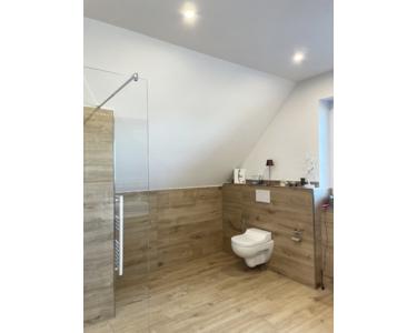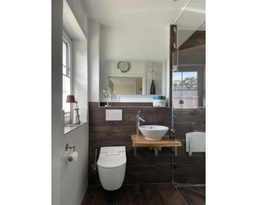- Beide Badezimmer sind bereits altersgerecht konzipiert, die Dusche im Erdgeschoss lässt sich als römisches Dampfbad nutzen.