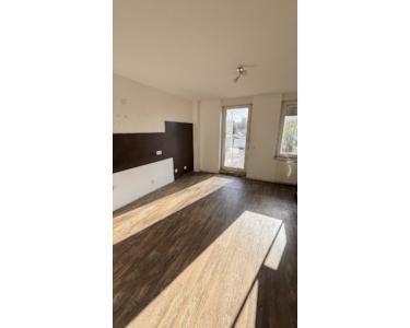- Fliesenboden im Wohnraum, Laminatboden im Schlafzimmer, Eiche-Echtholztüren, Küche hell gefliest