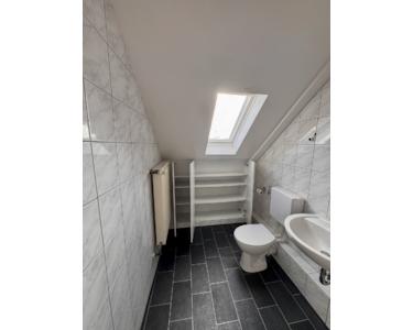 Die 2. Wohneinheit, eine Maisonettwohnung, erstreckt sich über das Ober- und Dachgeschoss und ist ca. 123 qm groß. Im 1. Obergeschoss befindet sich ein großes Wohn-Esszimmer, die Küche und ein Badezimmer mit Dusche. Von der Küche aus gelangen Sie auf eine schöne Dachterrasse über dem Anbau, mit Blick ins Grüne, die zum Entspannen einlädt.