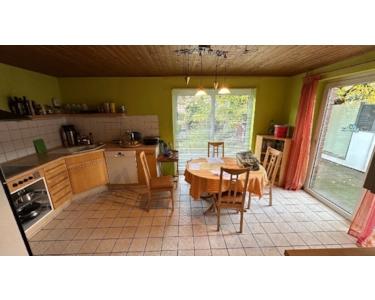 Küche mit Ausgang in den Garten