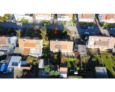 Bereits vorhanden ist eine genehmigte Bauplanung inklusive gültigem Baufreigabeschein (roter Punkt). Sie können also ohne Verzögerung mit dem Neubau beginnen. Aktuell befindet sich auf dem Grundstück eine stark sanierungsbedürftige Doppelhaushälfte mit alter Garage, die sich bestens für den Abriss eignet, um Platz für Ihren Neubau zu schaffen.