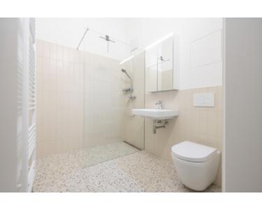 Die Ausstattung der Wohnungen ist hochwertig und dem Gebäude angemessen, mit Echtholzparkettböden, massiven Zimmer- und Wohnungsabschlusstür (Schallschutztür), einer hochwertigen Einbauküche und selbstverständlich Holzfenster mit Schallschutzverglasung. Die Bäder modern ausgestattet, mit Ganzglasduschabtrennung, bodengleich, Beleuchtung, Armaturen, Handtuchhaken und Badschrank.