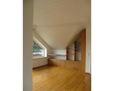 In der Küche ist noch Platz für einen Tisch und Stühle und es gibt einen kleinen Abstellraum (in der Dachschräge).