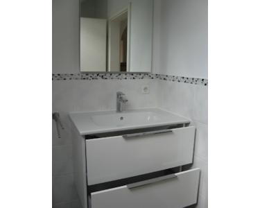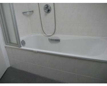 Das Badezimmer wurde von uns mit einem Waschtisch/Spiegel und einer neuen Toilette ergänzt. Die Badewanne ist halb hoch, kann so gut als Duschwanne genutzt werden.