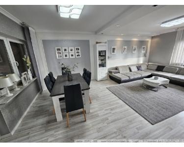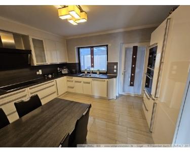 Die Grundrissgestaltung ist durchdacht und funktional. Das Wohn- und Esszimmer sowie die Küche verfügen jeweils über einen direkten Zugang zur Terrasse, was sich als sehr praktisch erweist. Im Wohn- und Esszimmer ist ein Kaminofen vorhanden, der für gemütliche und angenehme Atmosphäre sorgt. Das bereits modernisierte Badezimmer ist geschmackvoll und exklusive mit einer Badewanne, einer ebenerdigen Dusche, modernem Doppelwaschbecken, WC, Handtuchheizkörper sowie hochwertigen Wand- und Bodenfliesen ausgestattet. In allen Schlafzimmern ist sehr stillvolles Echtholzparkett verlegt. Die gemütliche und überdachte Terrasse mit Glasschiebeelementen ist ein Highlight und lädt zum entspannten Verweilen ein und bietet Schutz bei jedem Wetter. Eine Sauna befindet sich in der Garage und von hier können Sie die überdachte Terrasse optimal als Ruhebereich zum Relaxen nutzen. Die exklusive und moderne Einbauküche ist bereits im Kaufpreis enthalten.