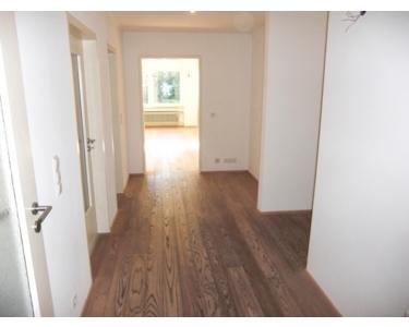 Die Wohnräume sind mit Parkettböden in Landhausdielenoptik (Eiche weiß geölt) ausgestattet.