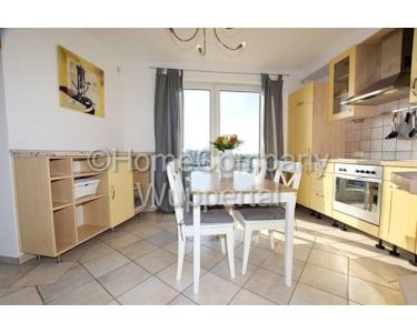 Diese großzügig geschnittene Wohnung erstreckt sich über 2 Etagen und ist mit einem modernen Fliesenboden ausgelegt. In der ersten Ebene befinden sich das Wohnzimmer mit integrierter Küche, ein Gäste-WC und die 2 Balkone. Über eine Treppe gelangt man in den oberen Schlafbereich mit dem Badezimmer. Der Wohnbereich ist mit einem großen, grauen Schlafsofa eingerichtet, außerdem gibt es hier einen bequemen Sessel, 2 Beistelltische und einen TV-Flachbildschirm mit SAT-Anschluss. Die integrierte Einbauküche mit einem kleinen Barbereich lässt keine Wünsche offen: ein Ceranfeld mit Backofen und Dunstesse, eine Kühlgefrierkombination, eine Spülmaschine, alle Kochutensilien und Geschirr werden hier zur Verfügung gestellt. Es gibt einen Esstisch für 4 Personen. Vom Essbereich aus betritt man den Balkon mit einer sehr schönen Aussicht, ein weiterer Balkon befindet sich auf der anderen Seite des Wohnzimmers. Über eine breite Treppe gelangt man in das Schlafzimmer mit einem Doppelbett, einem großen Einbauschrank und einem weiteren TV-Gerät. Mehrere Dachnischen sind zu Abstellräumen ausgebaut und bieten enorme Stauflächen. Das Tageslichtbad ist mit einem Hänge-WC, einer Badewanne mit Duschfunktion und einem Kosmetikschrank eingerichtet. Ein großer Schreibtisch über Eck für das Home-Office rundet das Angebot ab. Bettwäsche und Handtücher werden gestellt, im Keller befindet sich eine Waschmaschine zur Mitbenutzung. Der Mietpreis beträgt € 900,00 für eine Person inklusive aller Energie- und Nebenkosten und der Nutzung des Internetzugangs. Der Mietpreis für 2 Personen liegt bei monatlich € 1050,00. Die Endreinigung zahlt der Mieter. Sie erfolgt nach Aufwand und wird mit € 35,00 pro Stunde abgerechnet.