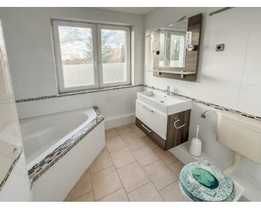 - schickes Bad mit Einbauten und Eckwanne