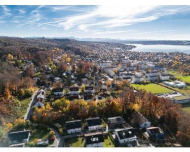Unverbaubare Hanglage an Wald/Ortsrand mit Waldblick im Sommer/Herbst, im Winter Blick über Herrsching zum Ammersee