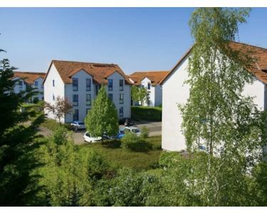 Wohnanlage mit aufgelockerter Bebauung und auch weit über Felder. Eine an den