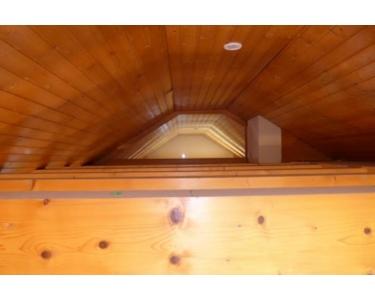 - Das Dachgeschoß mit sehr hohen Räumen (lichte Balken) ist mit hellem Holz ausgekleidet.