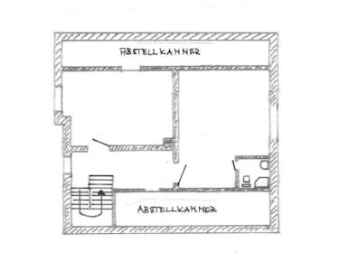 Über eine Treppe innerhalb der Wohnung erreicht man das Dachgeschoß (in offener Bauweise bezüglich des Daches, Höhe vom Boden bis zur Spitze des Daches ca. 3,10 m), mit 2 großen Zimmern und einem Gäste-Bad. Tatsächliche Fläche wie im OG, für die Mietberechnung wurden Kammern und schräge Wände mindernd berücksichtigt.