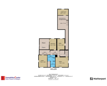 Das Untergeschoss bietet großzügige, vielseitig nutzbare Kellerräume, die sich perfekt als Lager, Hobbybereich oder Hauswirtschaftsraum eignen. Besonders hervorzuheben ist der direkte Zugang zu einem separaten Werkstattraum – optimal für Heimwerker.