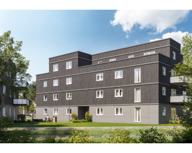 Neubau Eigentumswohnungen - 6 Mehrfamilienhäuser mit insgesamt 72 Wohnungen werden in klimaschonender Massivholz-Bauweise mit industriell vorgefertigten Wand- und Deckenelementen (serielle Fertigung) errichtet. Jedes der Gebäude verfügt über ein eigenes Treppenhaus und Fahrstuhl bis zur Tiefgarage, sodass Sie auf möglichst kurzem Wege komfortabel in jede Wohnetage gelangen. Jeder Wohnung ist ein abschließbarer Kellerraum zugeordnet. Die Häuser verfügen über einen ebenerdigen, überdachten Zugang sowie eine barrierearme Ausführung. So sind die Bäder beispielsweise mit großen, bodenebenen Duschen ausgestattet und die Austrittsschwellen der Balkone und Terrassen sind nur ca. 1 cm hoch.