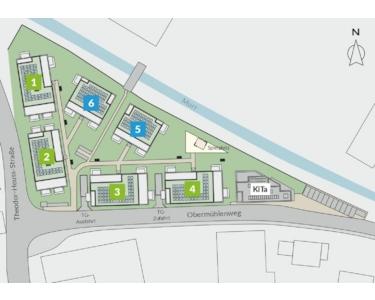 Die Häuser 5 und 6 in geschützter Innenhoflage verfügen über 8 Wohnungen je Gebäude, mit Wohnflächen von ca. 61 bis 117 m² und Wohnungsgrößen mit 2, 3 und 4 Zimmer. Die Gebäude sind identisch vom Aufbau, jedoch gespiegelt nebeneinander angeordnet.