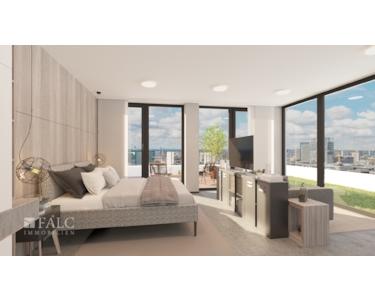 Jede Etage bietet eine durchdachte Grundrissgestaltung mit variablen Apartmentlösungen. Möglich sind sowohl Einzelapartments, Mehrbettzimmer als auch kombinierte Wohneinheiten mit gemeinschaftlichen Aufenthaltsbereichen. Ergänzt werden die Wohnungen durch Küchen, moderne Bäder, Abstellräume sowie gemeinschaftlich nutzbare Flächen. Die Grundrisse ermöglichen eine effiziente Raumnutzung und schaffen gleichzeitig eine angenehme Wohnatmosphäre mit viel Tageslicht.