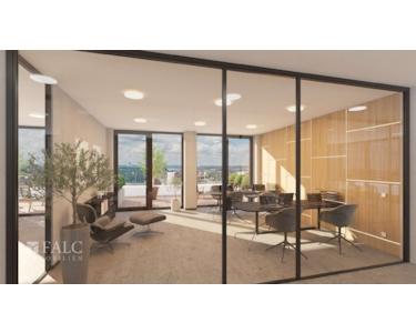 Die Büroetagen sind großzügig, lichtdurchflutet und so konzipiert, dass sie sowohl als Ganzes als auch in Teilflächen genutzt werden können. Eine flexible Unterteilung in etwa hälftige Einheiten ist in der Planung vorgesehen, sodass die Flächen optimal an die individuellen Bedürfnisse der Mieter angepasst werden können. Damit eignet sich das Gebäude gleichermaßen für größere Unternehmen, die eine gesamte oder mehrere Etage/n exklusiv nutzen möchten, wie auch für kleinere Firmen, die von der repräsentativen Adresse profitieren wollen.