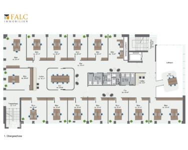 Jede Etage bietet eine durchdachte Grundrissgestaltung mit variablen Raumkonzepten. Möglich sind sowohl klassische Zellenbüros, offene Großraumlösungen oder moderne Kombi-Büros. Ergänzt werden die Flächen durch Besprechungs- und Konferenzräume, Teeküchen, sanitäre Anlagen sowie Erschließungs- und Aufenthaltsbereiche. Die Grundrisse lassen eine effiziente Flächennutzung zu und schaffen gleichzeitig eine angenehme Arbeitsatmosphäre mit viel Tageslicht.