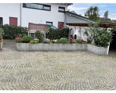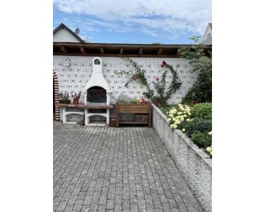 Wohnung im Erdgeschoss (92 m²): Die gut geschnittene Erdgeschosswohnung bietet 3 Zimmer, eine neuwertige Einbauküche und ein modernes Bad. Eine großzügige Terrasse lädt zum Entspannen ein und führt direkt in den geräumigen Hof. Hier finden sich eine Doppelgarage sowie ein Carport. Der schön angelegte Grillplatz mit Garten und Erweiterungsoption rundet das Angebot ab.