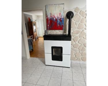 Im Flur befindet sich ein hochwertiger Pellet-Ofen, der an kalten Tagen für gemütliche Wärme sorgt. Ein großes Bad, ein Gäste-WC und ein Abstellraum runden das Angebot in der ersten Etage ab.