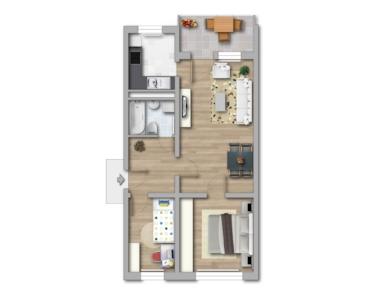 - das Verlegen eines neuen Fußbodenbelages in heller Holzdielenoptik