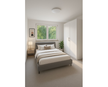Die gezeigten möblierten Zimmer stammen aus KI-generierten Beispielbildern und dienen zur Inspiration. Die meisten Wohnungen werden leer übergeben – wir haben jedoch auch vollständig möblierte Varianten im Angebot.