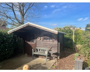 Der liebevoll angelegte Garten mit gepflegten Grünflächen lädt zum Entspannen ein. Ein geräumiges Gartenhaus bietet zahlreiche Nutzungsmöglichkeiten, ob als Hobbyraum, Atelier oder persönlicher Rückzugsort.