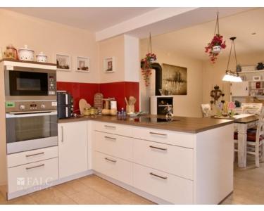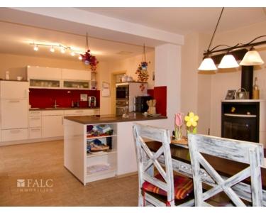 Der Wohnbereich, Holzofen vorhanden, ist hell und geräumig, ideal für entspannte Abende mit der Familie. Von hier aus haben Sie Zugang zur Terrasse, die einen schönen Blick auf den gepflegten Garten bietet. Der Garten selbst ist ein Paradies für Kinder und lädt zum Spielen und Entspannen ein. Bei der Wohnküche gibt es ein Schlafzimmer mit Zugang Garten, und über die Wohnküche gelangen Sie in den Wintergarten und Garten.