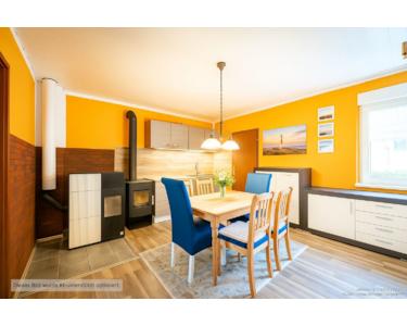 Über einen kleinen Windfang betreten Sie das Haus und gelangen in den Flur, von dem aus Sie direkt die Wohnküche erreichen – das Herzstück dieses Hauses. Hier trifft sich das Leben: Ein offener Essbereich lädt zu gemeinsamen Mahlzeiten und gemütlichen Stunden ein, während der Pelletofen für behagliche Wärme sorgt. Von der Wohnküche aus gelangen Sie zum einen in den Keller und über einen weiteren anschließenden kleinen Flur sowohl zum Badezimmer mit Dusche als auch nach draußen in den Innenhof, der Platz für Abstellmöglichkeiten, eine kleine Werkstatt oder einfach zum Entspannen bietet.