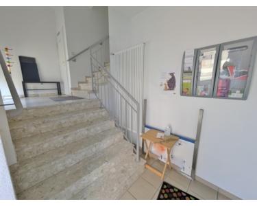 Ein separater Eingang führt Sie über eine breite Treppe direkt in das Obergeschoss, wo ein einladender, heller Empfangsbereich auf Sie wartet. Von hier aus gelangen Sie in alle weiteren Räumlichkeiten.