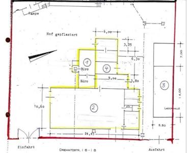 - Zugang: Breite Tore für Anlieferung, Zufahrt für Transportfahrzeuge möglich