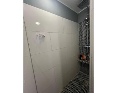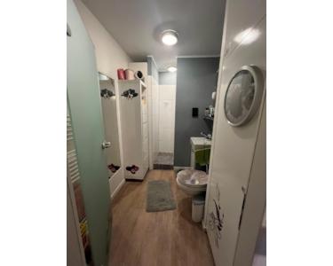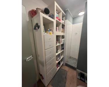 Modernisiertes Duschbad mit elektrisch ausfahrbarem Regal