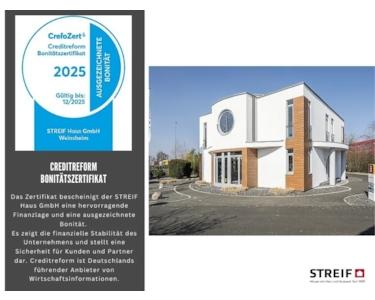 Die hohe Wertigkeit und Langlebigkeit eines STREIF-Energiespar-Hauses wird durch zahlreiche Auszeichnungen, Qualitäts- und Gütesiegel unabhängiger Institute und Verbände dokumentiert.