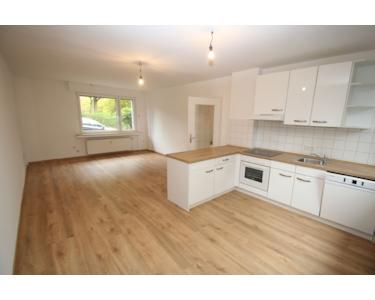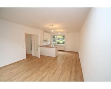 Flur, Schlafen, Wohnen/ offene Küche (Einbauküche VHB), Tageslichtbad (Dusche, WC, Waschbecken)
