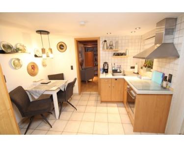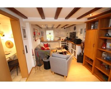 Das angrenzende Einfamilienhaus zeigt den besonderen Charme eines historischen Gebäudes. Die Kombination aus Fachwerk und Schiefer schafft ein unverwechselbares Ambiente. Auch hier wurden in den letzten Jahren wichtige Modernisierungen durchgeführt – darunter neue Fenster, ein zeitgemäßes Heizsystem sowie modernisierte Bäder. Dach und Dachstuhl wurden bereits erneuert.