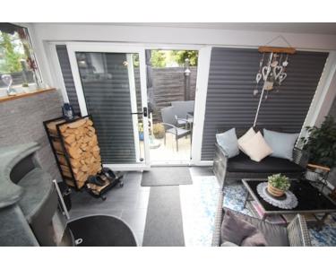 -Flur, Küche: Einbauküche (VHB), Schlafen, Wannenbad mit Fenster, kl. Abstellraum, Wohnen, kleiner Wintergarten und Terrasse