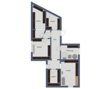 3 Kellerräume, Heizungsraum, Waschraum, Tankraum 6400l Stahltank mit Kunststoff-Innenbeschichtung