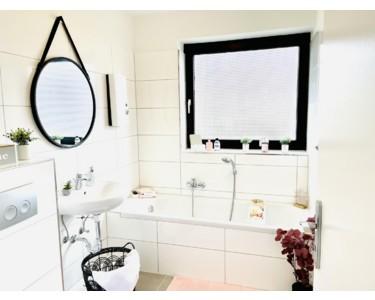 Balkon, Vollbad, Einbauküche, Laminat, Fliesen
