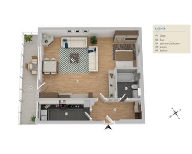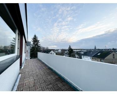 Der XXL Balkon erstreckt sich über die gesamte Breite der Wohnung und bietet dank der perfekten Süd-West-Ausrichtung maximale Sonnenstunden – über den Dächern von Ensen.
